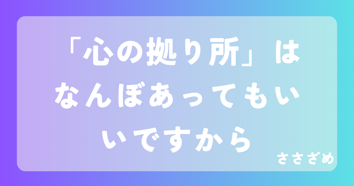 心の拠り所をたくさん作り、日ごとに、最適な拠り所を選ぶ、そんな生き方も悪くないはずだ。